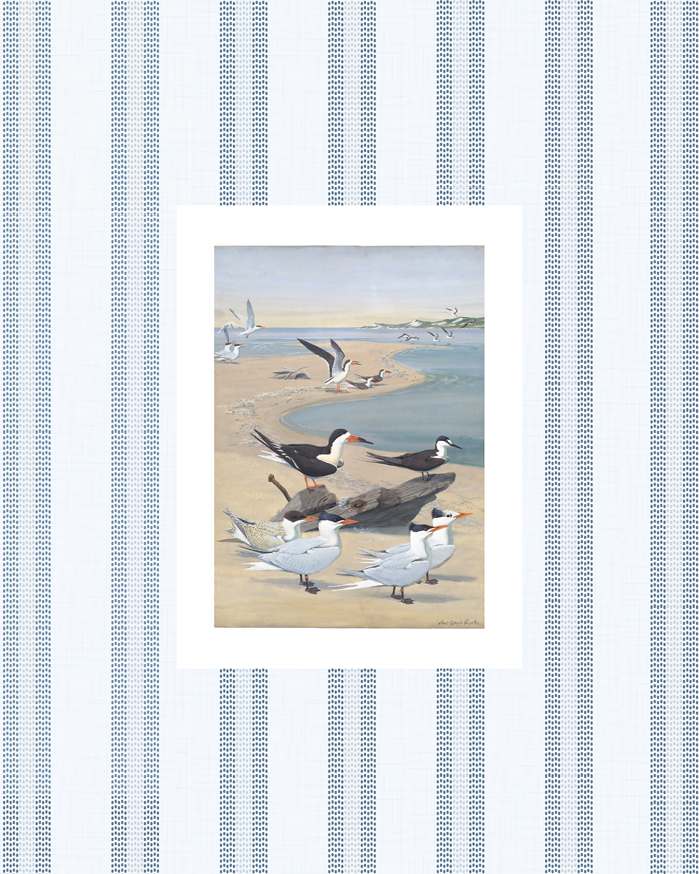 This print is part of a curated collection of vintage art with a custom touch. Each piece is finished with a patterned matte I’ve designed to give classic artwork a fresh, coastal-inspired feel. The art and patterned border are printed together on one sheet of paper, so it’s ready to frame and display.